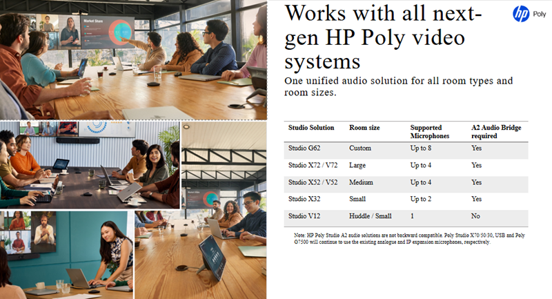 Samen vormen ze een schaalbare, plug-and-play audio-oplossing die naadloos integreert met de nieuwste videovergadersystemen van HP Poly.